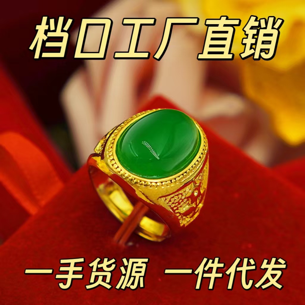 Vietnamese Sand Gold Imitation Gemstone Jade Men's Ring Jewelry Malay Jade Men's Open Ring Imitation Chalcedony Tourmaline Ring