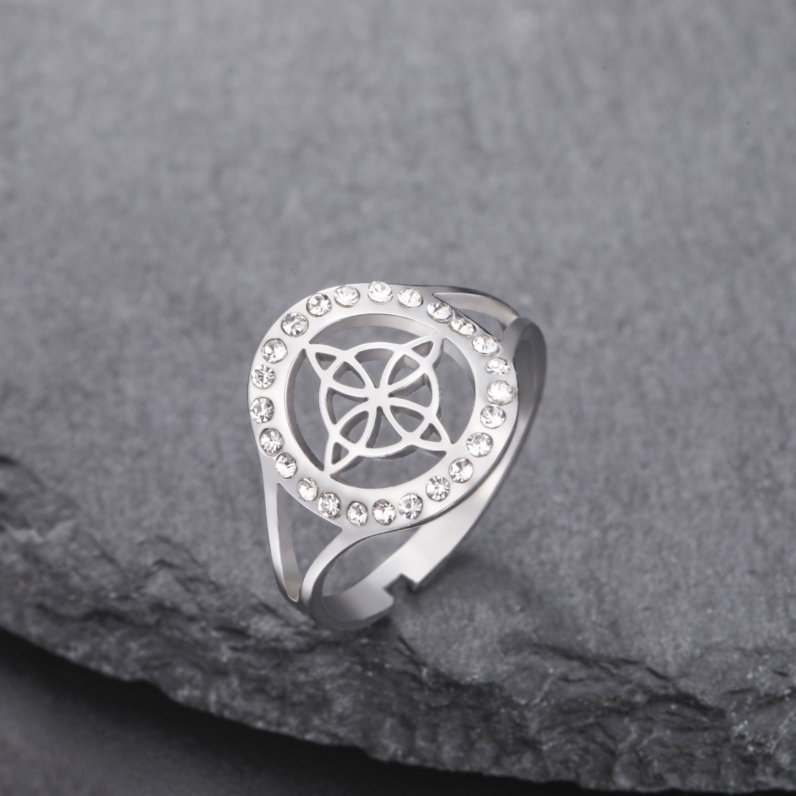Foreign trade export supply cutting titanium steel hollow witch knot adjustable diamond ring stainless steel ring for men and women