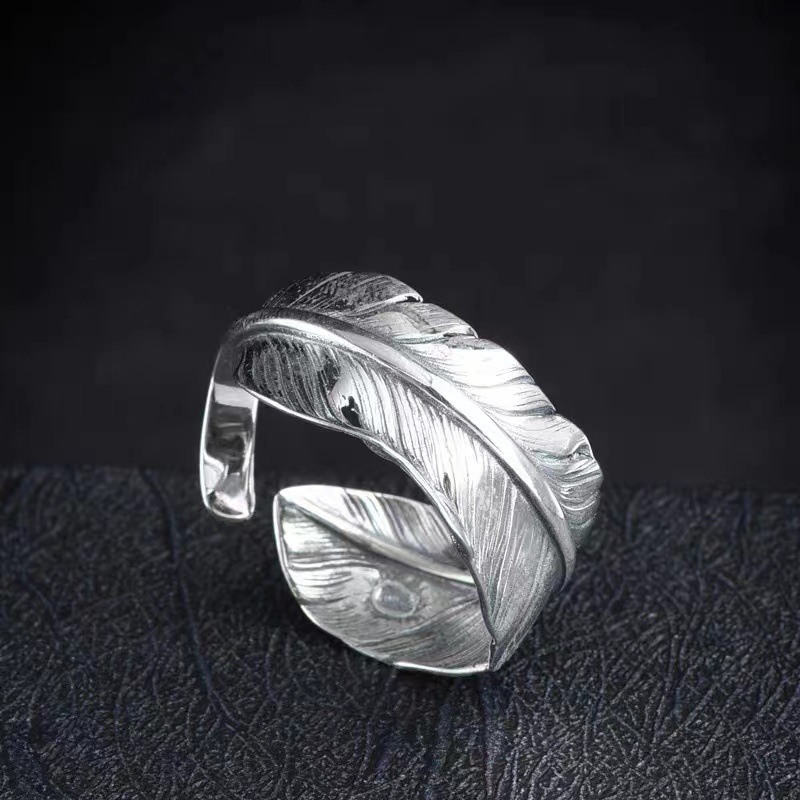 925 silver feather ring hipster Open men's ring Japanese and Korean creative personality Takahashi Wu Lang female ring