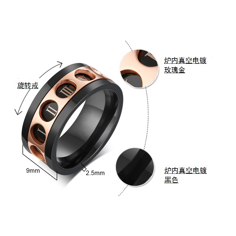 New 9mm Stainless Steel Roman Numeral Rotating Ring Black Rose Men's Ring Cross-Border Titanium Steel Ring Wholesale