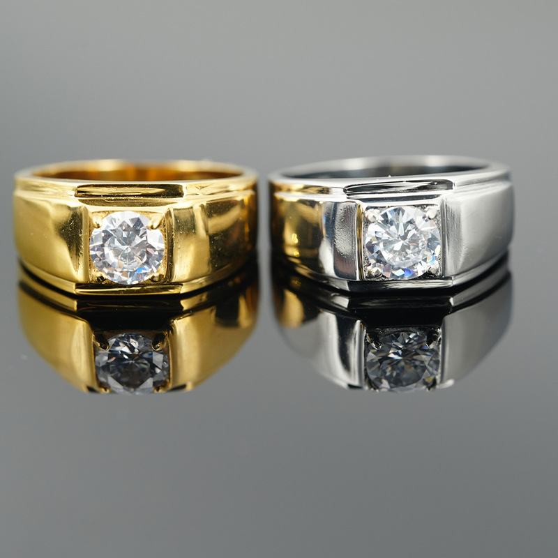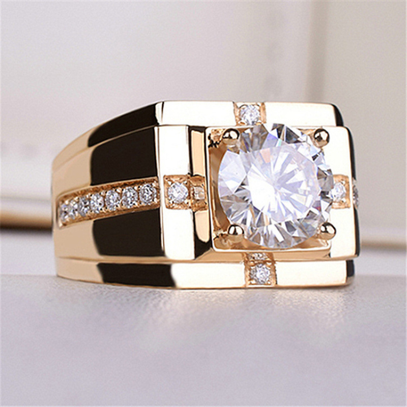 Classic high carbon stone high simulation men's diamond ring imitation moissanite gold plating domineering wedding ring wholesale