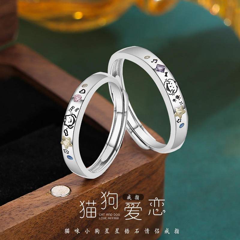 Cat and Dog Diary Couple Rings for Men and Women Cute Forest Style Cute Pet Rings Light Luxury Couple Rings Gift Rings