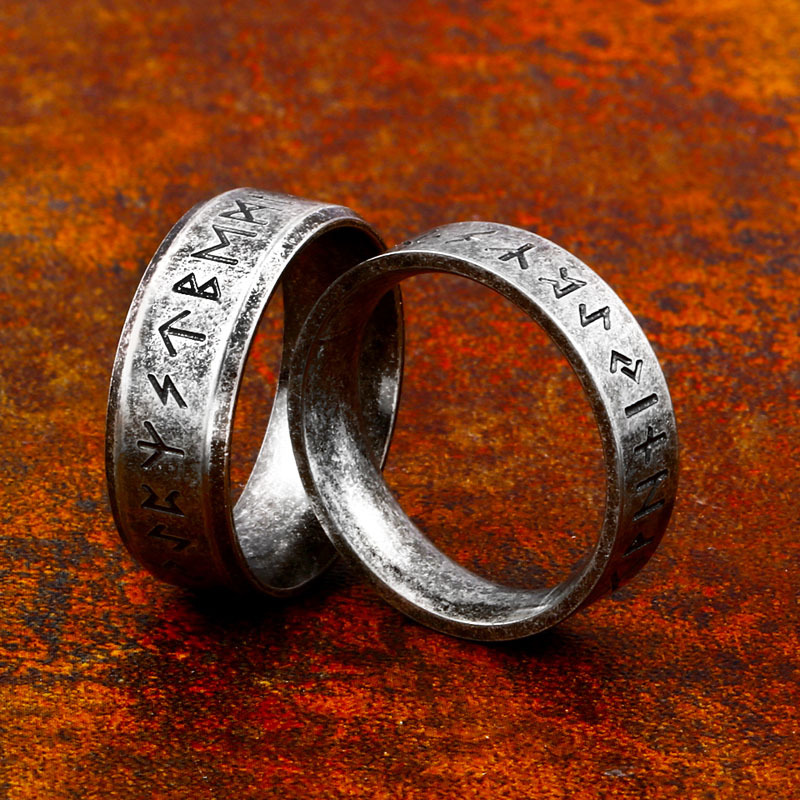 Steel Warrior Japanese and Korean Fashion Simple Viking Amulet Ring Wholesale Viking Letter Men's Titanium Steel Ring