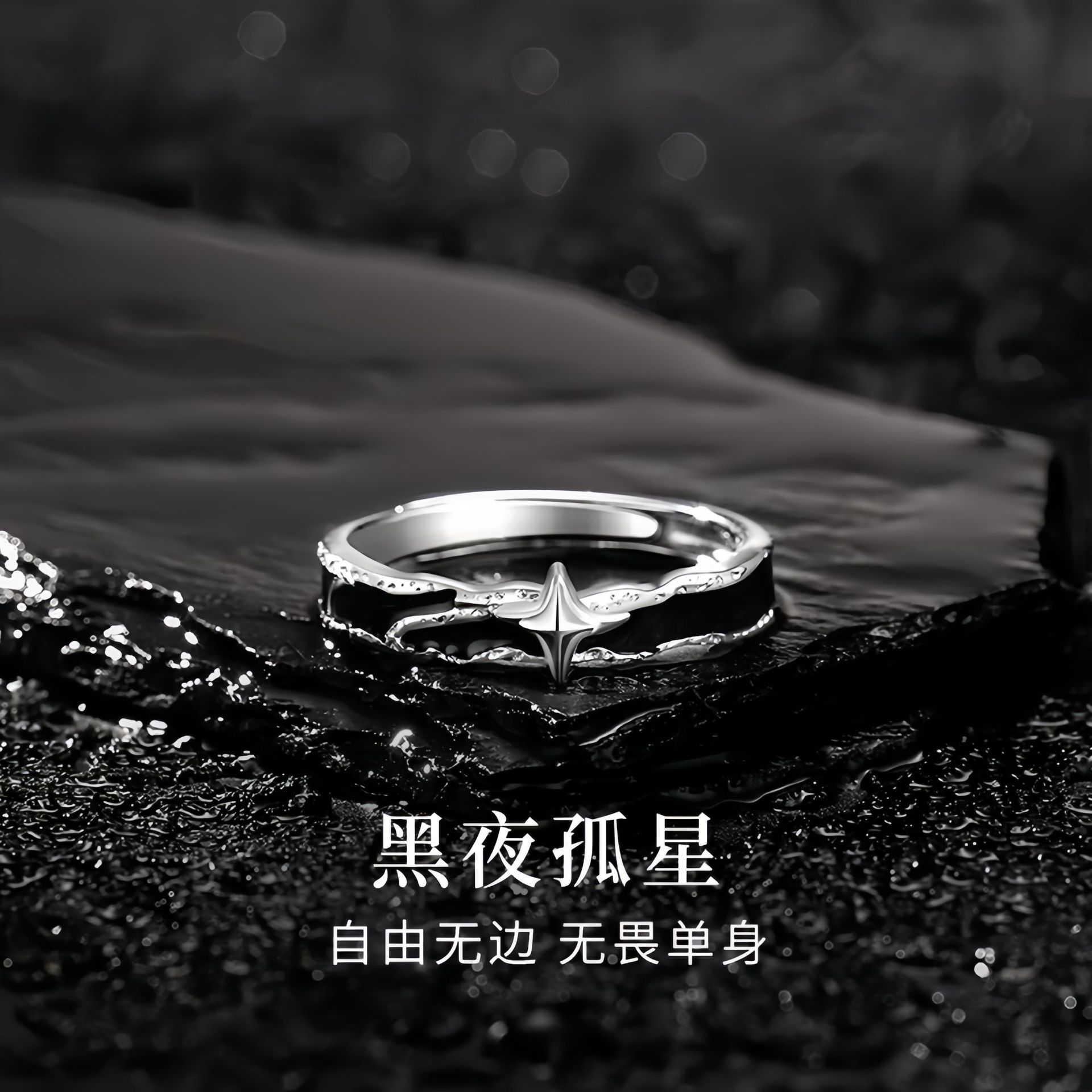 S925 Sterling Silver Night Star Ring Men's Single Niche Design High-End Adjustable Ring Trendy Hand Jewelry