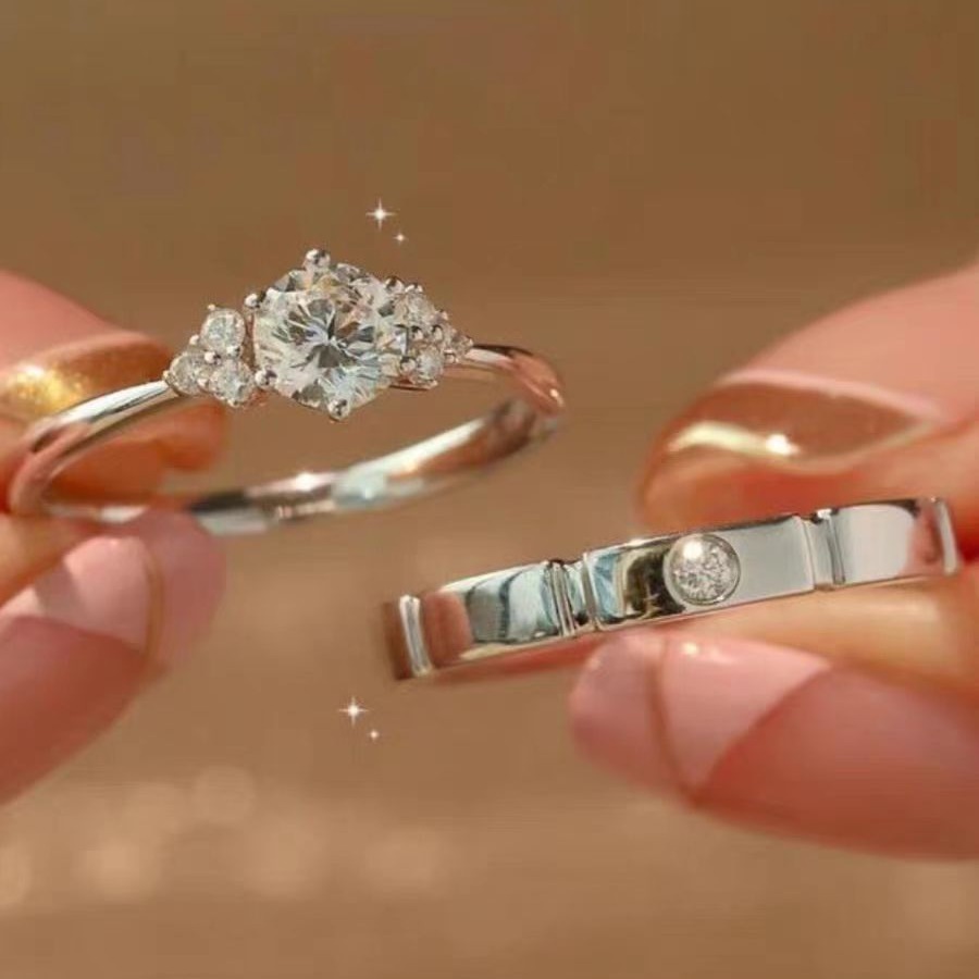 S999 Sterling Silver Male Girlfriend Couple's Ring Living Mouth Pair of Moissanite Star River Brilliant Valentine's Day Gift Engraving