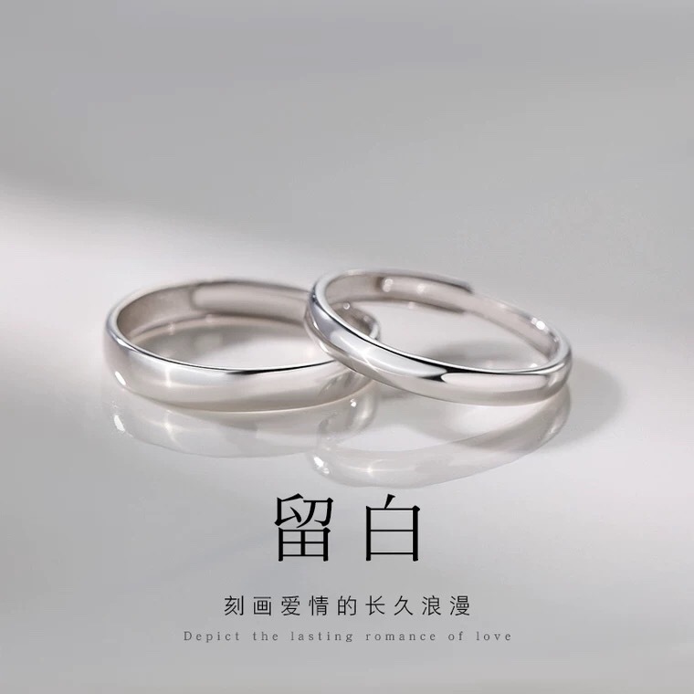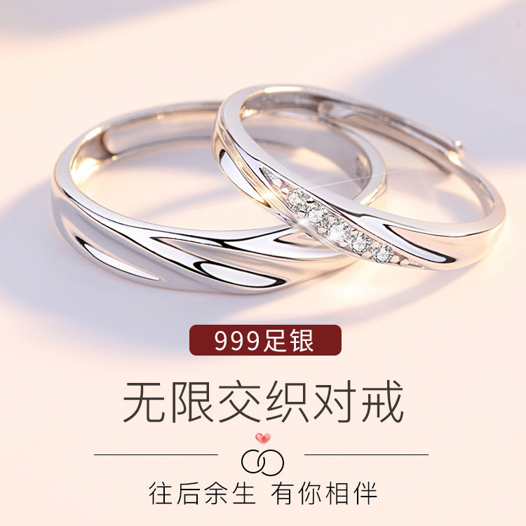 Pure Silver 999 Couple Rings for Men and Women, a Pair of Niche Accessible Luxury High-End Ins Style Fashion Rings