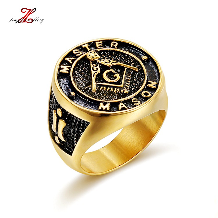 Europe and the United States outside the hot classic vintage Masonic AG titanium steel color gold-plated smear men's ring