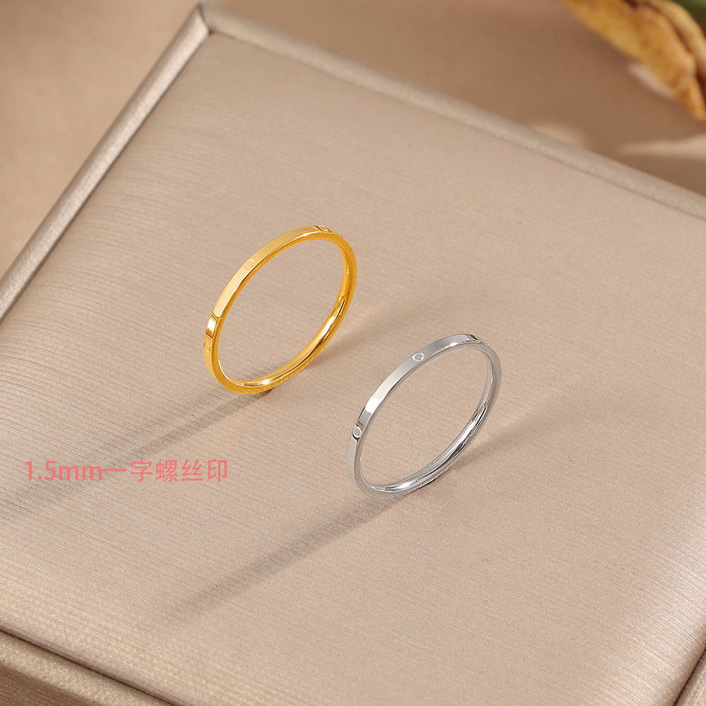 1.5mm Plain Ring for Women, Simple and Versatile, Titanium Steel for Men and Women, Minus Sign Ins Style Couple Ring That Does Not Fade