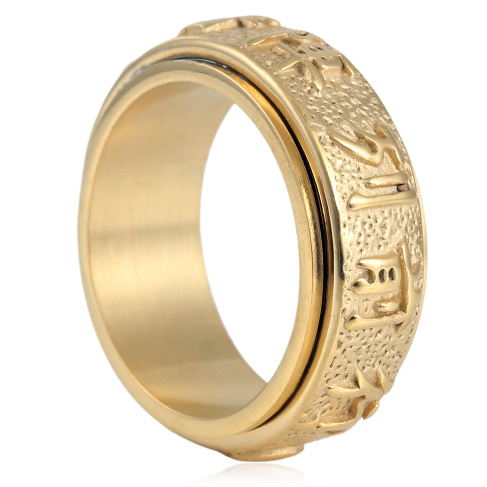 AliExpress selling European and American fashion religious turn six words titanium steel ring retro men's ring wholesale