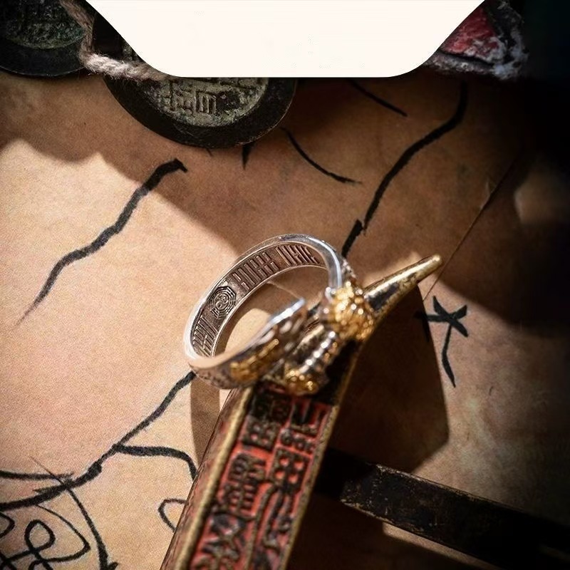 Taoist Culture Seven-Star Sword Open Ring for Men and Women, New Chinese Style Retro Ethnic Style Adjustable Ring, National Trend