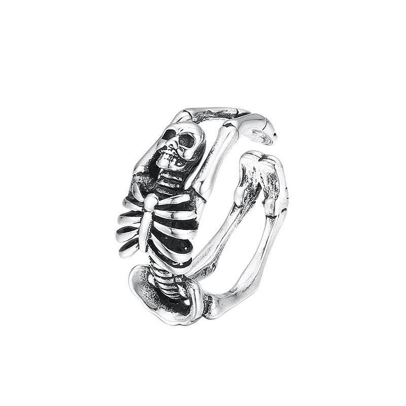 European and American Halloween rock punk skull open ring men's cross-border exaggerated retro ring exaggerated punk bracelet