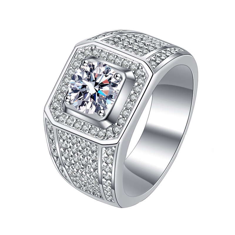 Cross-Border European and American Export Hot-Selling Baby's Breath 2 Carat Imitation Moissanite Atmospheric Men's Ring Domineering Super Flash Factory Wholesale
