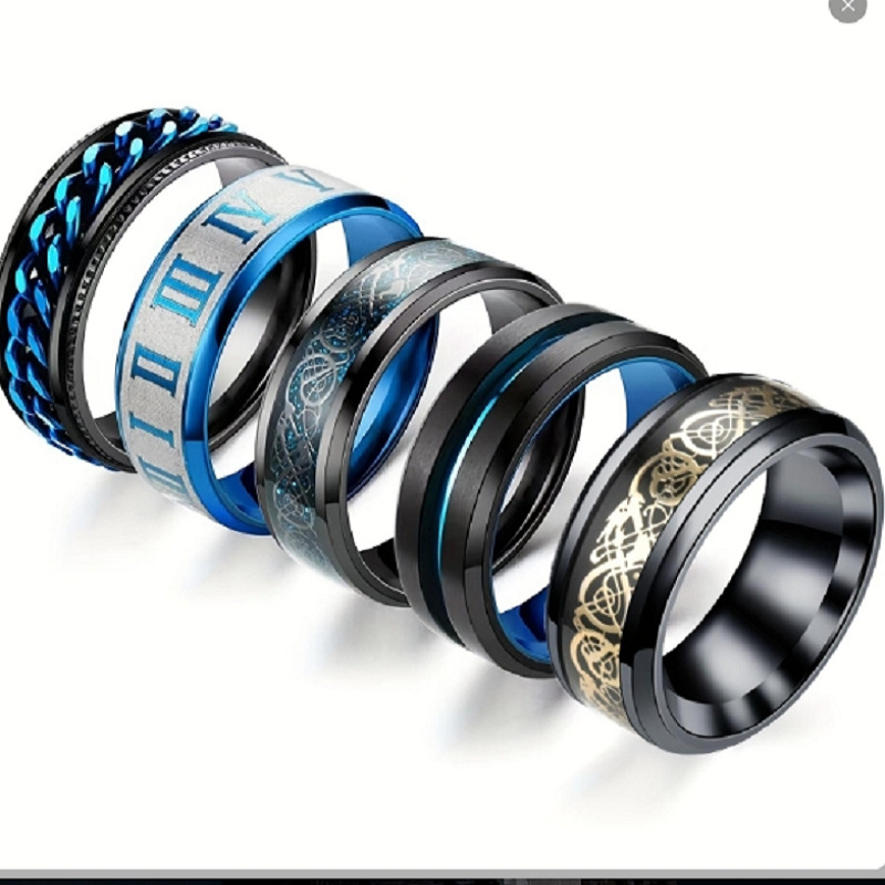 2022 simple transfer jewelry men's titanium steel rotatable blue Roman dragon pattern set ring jewelry manufacturers