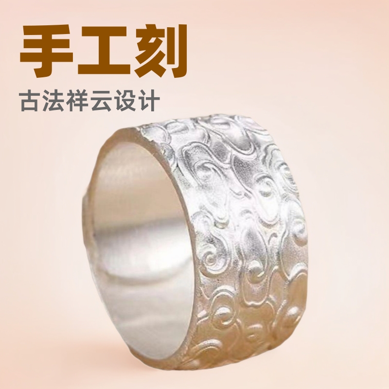 High-end Xiangyun silver-plated ring men's width plus size Thai silver retro personality trendy distressed open ring new style