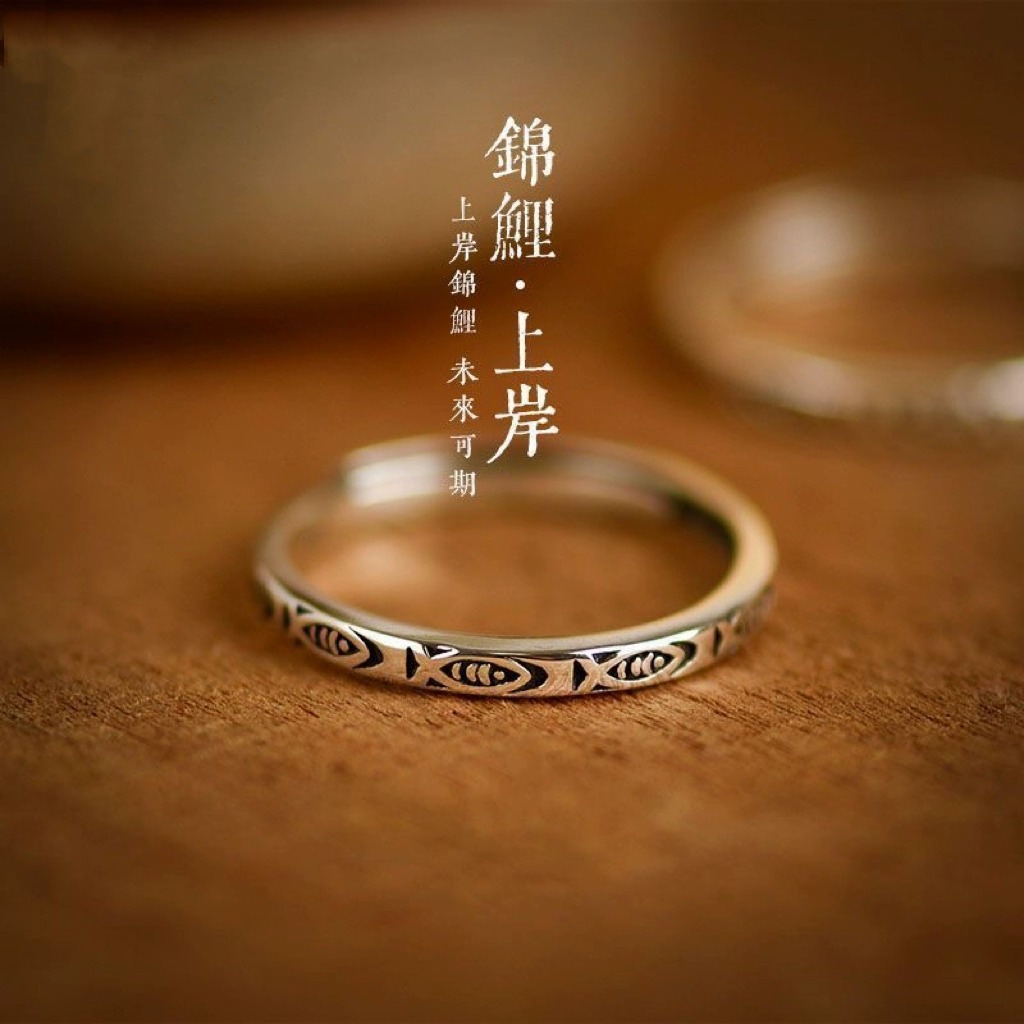 Koi in Hand, Everything You Need, Sterling Silver Good Luck Ring for Women and Men, Vintage Thai Silver Couple Niche Open Ring