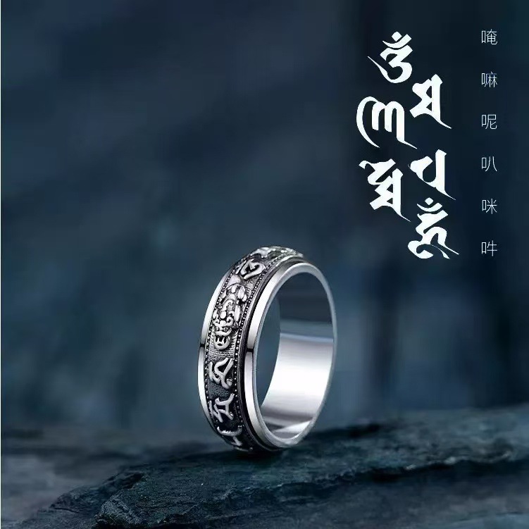 Rotatable Six-Character Mantra Men's Rotating Pixiu Ring Trendy Index Finger Men's Stress-Relief Personalized Men's Ring Single Ring