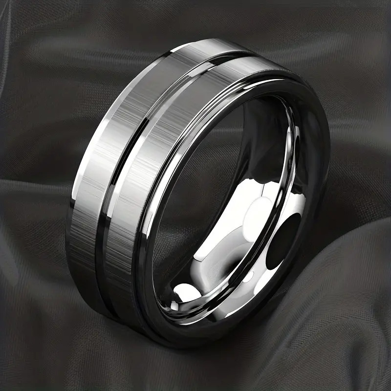 2023 European and American Fashion Temu Xiyin Men's 8mm Silver Flat Stainless Steel Ring Source Manufacturer Direct Delivery
