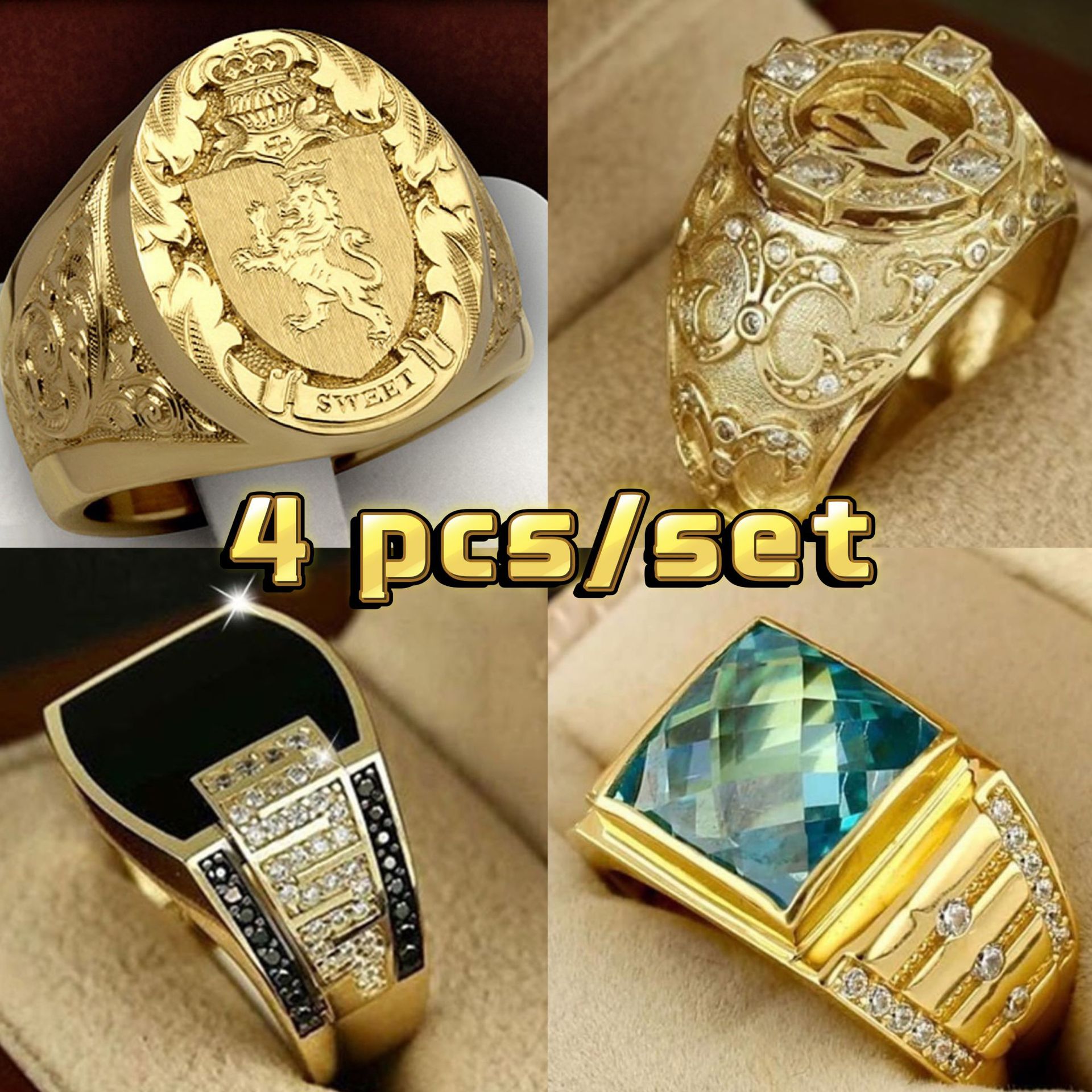 Sanjie factory direct fashion domineering men's ring combination set decoration cross-border TEMU best selling men's ring