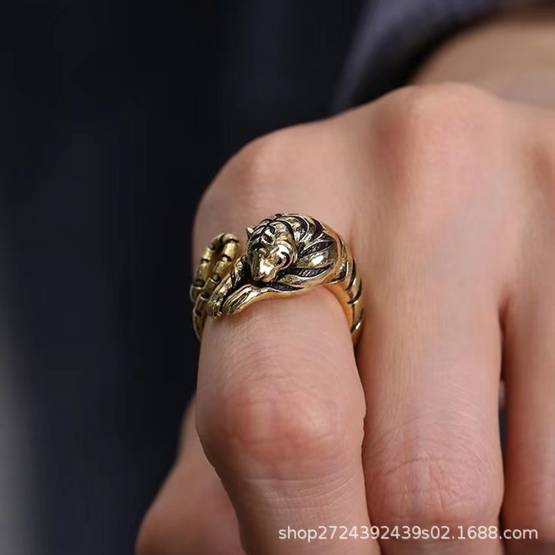 Little Tiger Open Men's Chinese Trend Personality Retro Simple Zodiac Tail Ring Year of the Tiger Style Fashion New Couple Ring
