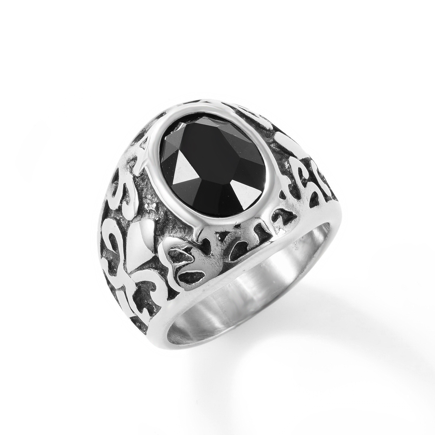 European and American Cross-Border Jewelry, Fashionable Geometric Square Red Gemstone Ring, Versatile Ring for Men's Business Work Clothing
