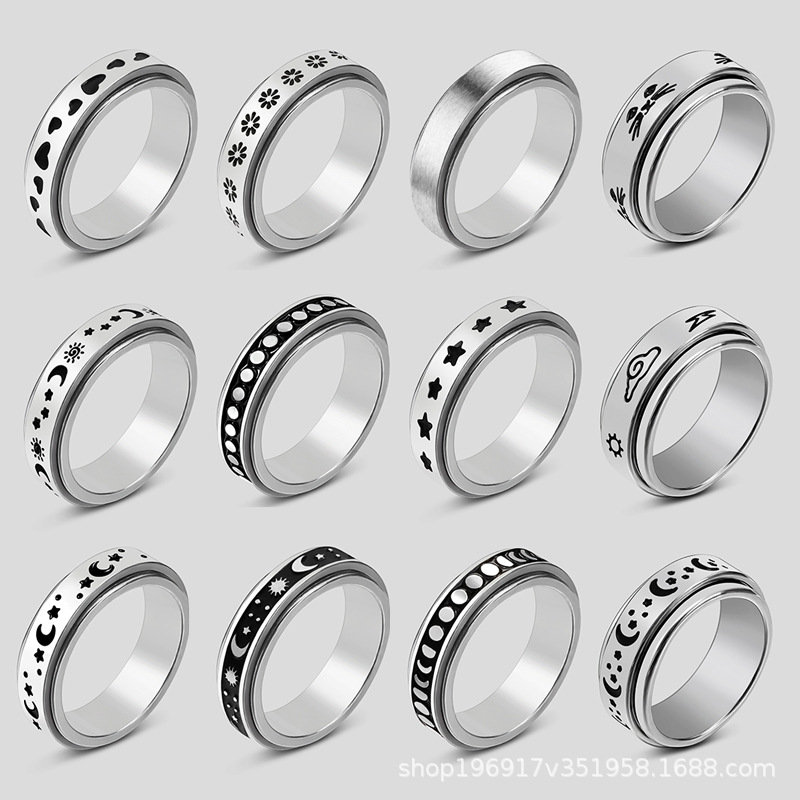 Stainless Steel Rotatable Ring Men's European and American Cross-border Stars and Moon Rotating Decompression Titanium Steel Ring Women's Color-free