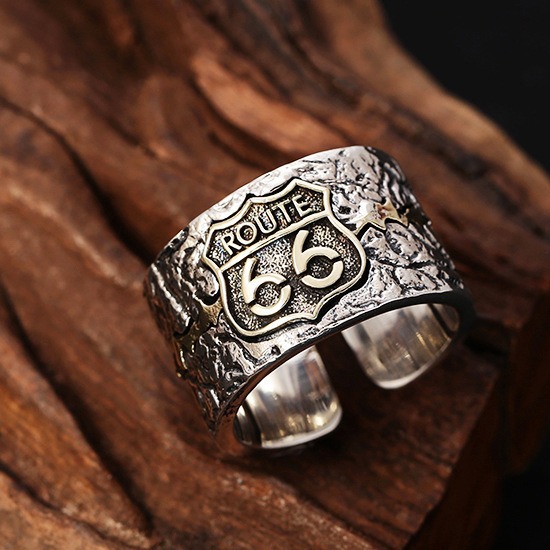 Yishang s925 Thai Silver fashion retro simple free road No. 66 male motorcycle punk ring
