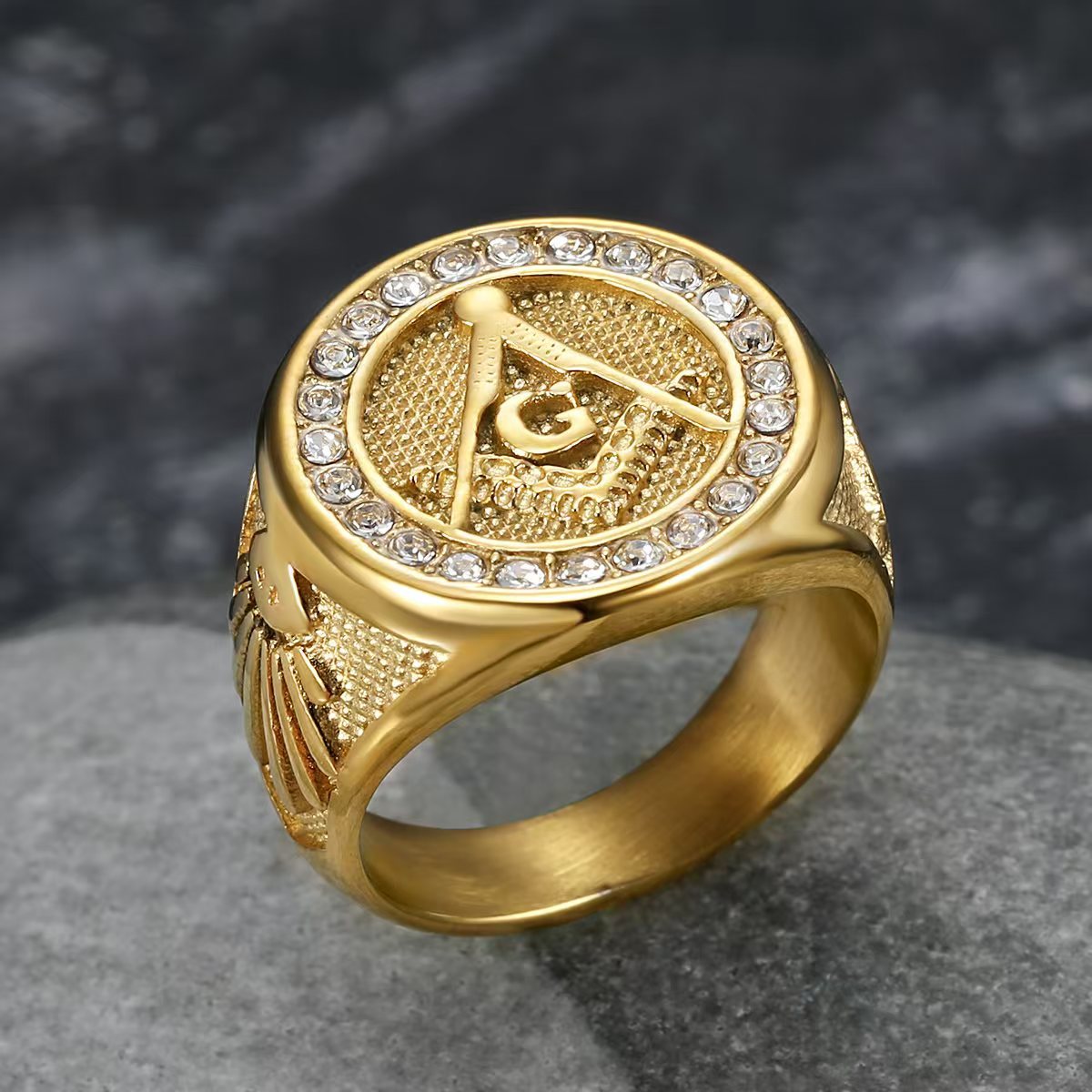 European and American Cross-Border Hot-Selling Retro Domineering Diamond-Encrusted Ag Masonic Cross Stainless Steel Ring Men's Ring