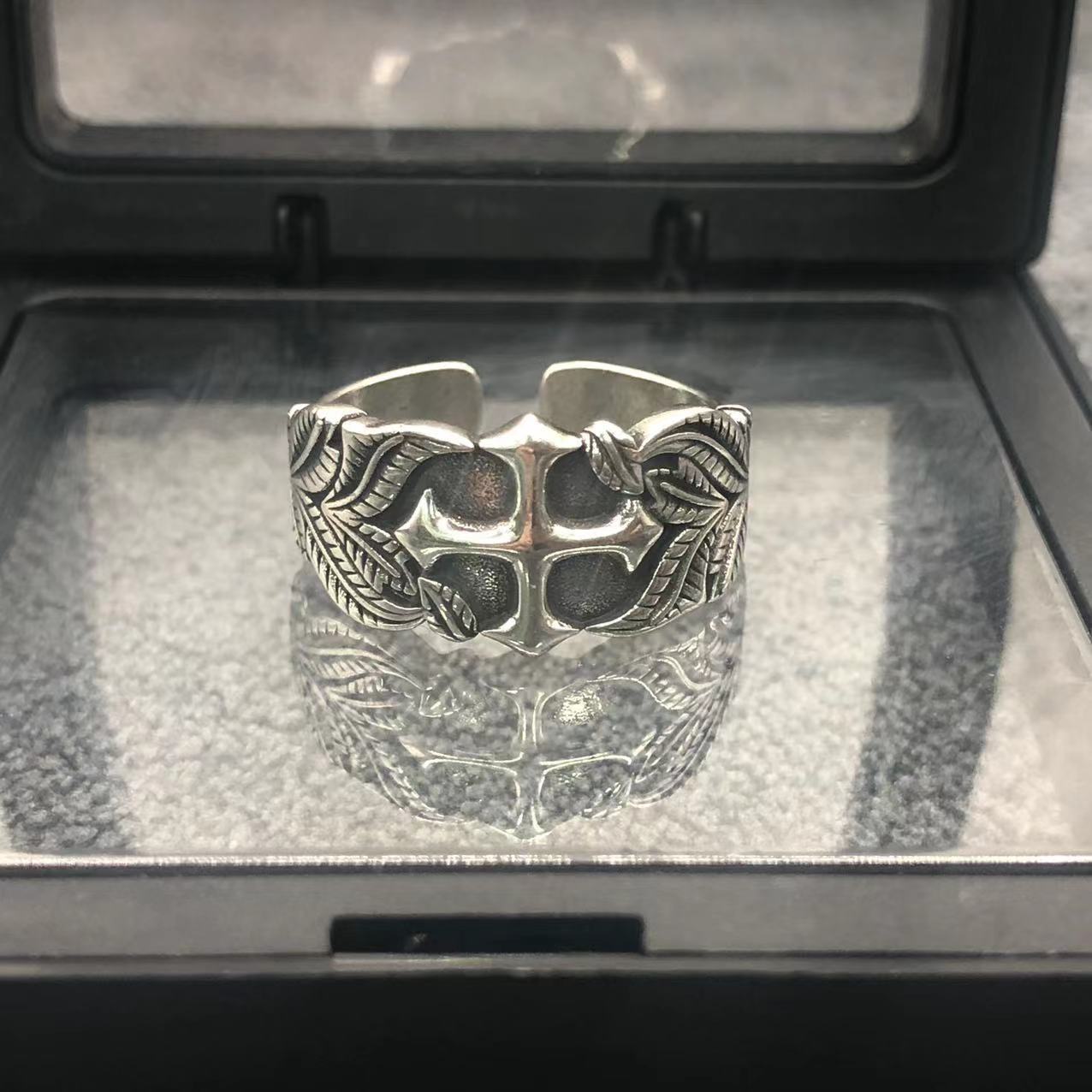 Yishang s925 Thai silver vintage ring men's fashion brand cool cross open adjustable ring index finger ring