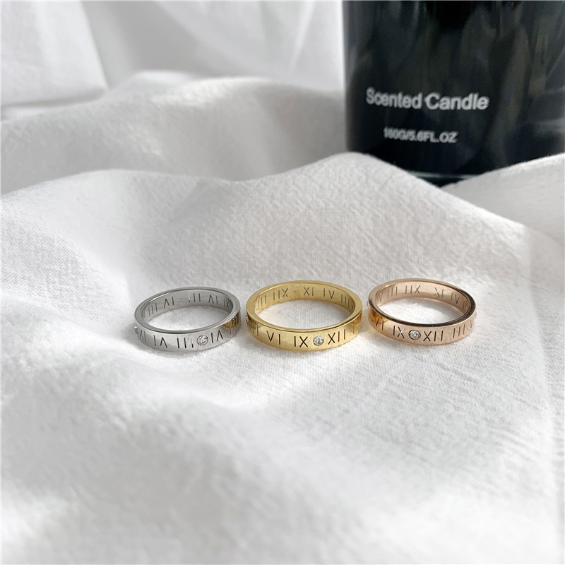 Japanese and Korean Style Titanium Steel Rose Gold Ring Women's ins Korean Style Men's Simple Couple Fashion Personalized Retro Roman Ring