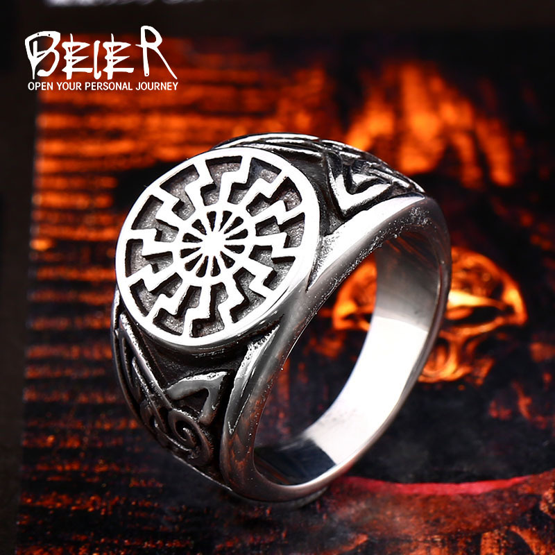 beier titanium steel men's Viking carved ring European and American retro Viking personality ring clear goods