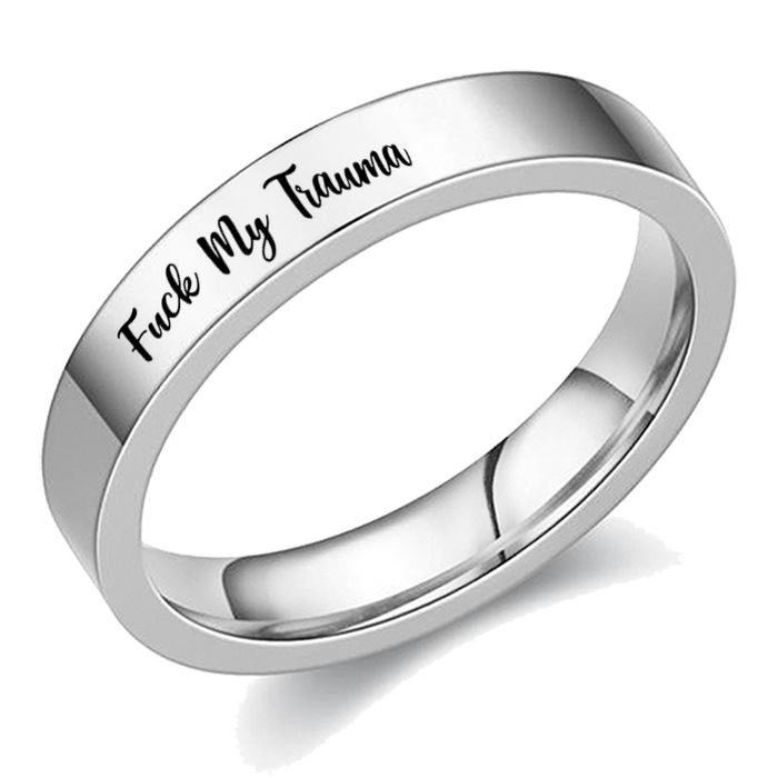 Cross-border European and American Explosions Female Letters Fuck My Trauma Ring Titanium Steel Couple Jewelry Engraving Men's Simple