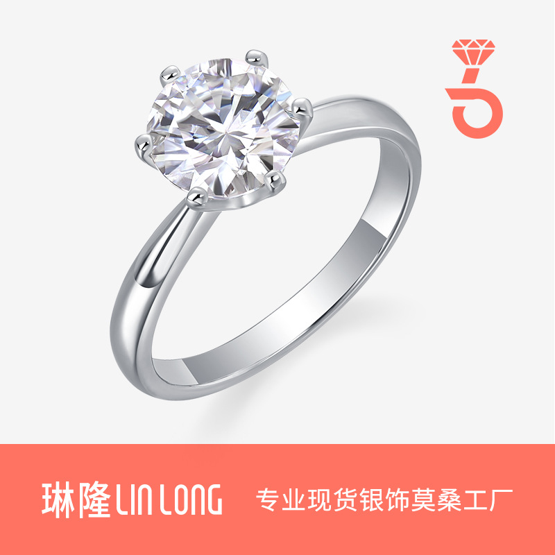 Foreign Trade 925 Sterling Silver Light Luxury High-end Ring Children and Women's Color-free Simple Six-claw Ring to Moissanite Cross-border Ring