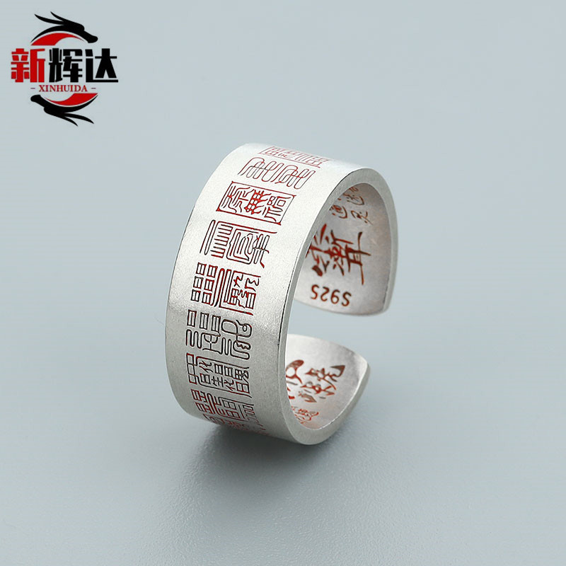 Taoist golden light imprint heart curse Taoist cinnabar ring female s925 sterling silver this year national tide wrench male original design