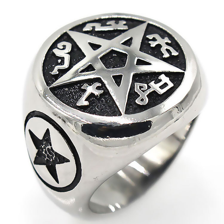 RR134 Export European and American Retro Men's Titanium Steel Ring Trendy Men's Domineering Steel Ring Round Five-star Alien Text
