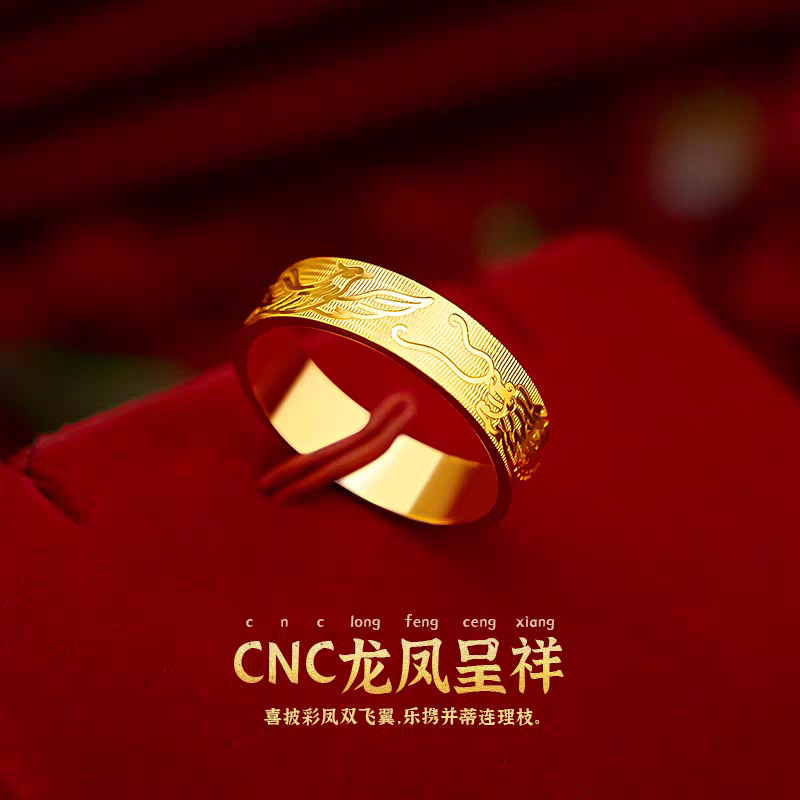 Vietnamese Sand Gold Cnc Computer Carved Closed Ring, Dragon and Phoenix Auspicious Ring, Men's and Women's Ring, Factory Direct Supply Wholesale