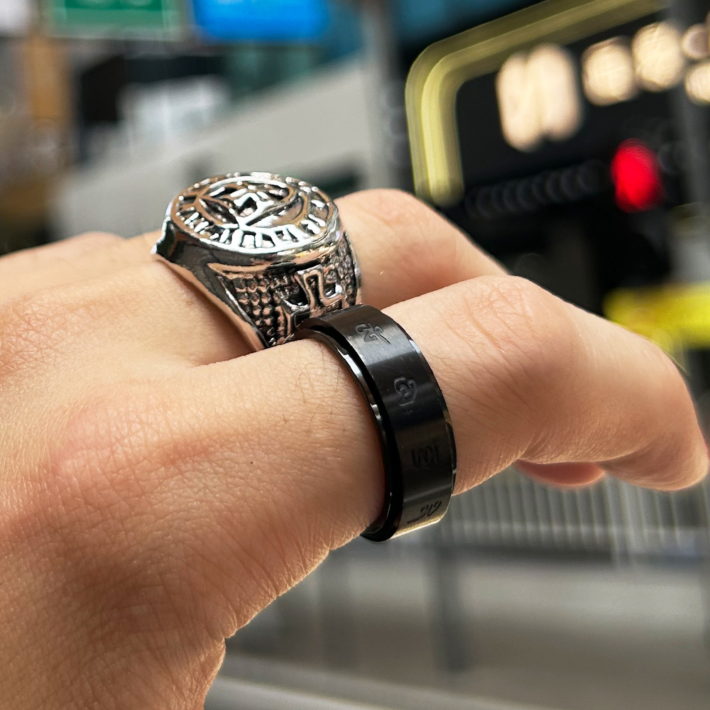Cross-Border Supply New Product Rotatable Prayer Six-Syllable Scripture Ring Frosted Brushed Black Street Titanium Steel Ring