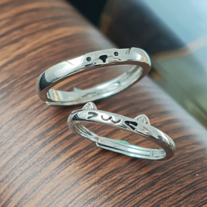 Cat and Dog Diary Couple Rings Niche Light Luxury Versatile Unisex Pair Light Luxury Style Combinable Cute Pet Couple Rings Ins