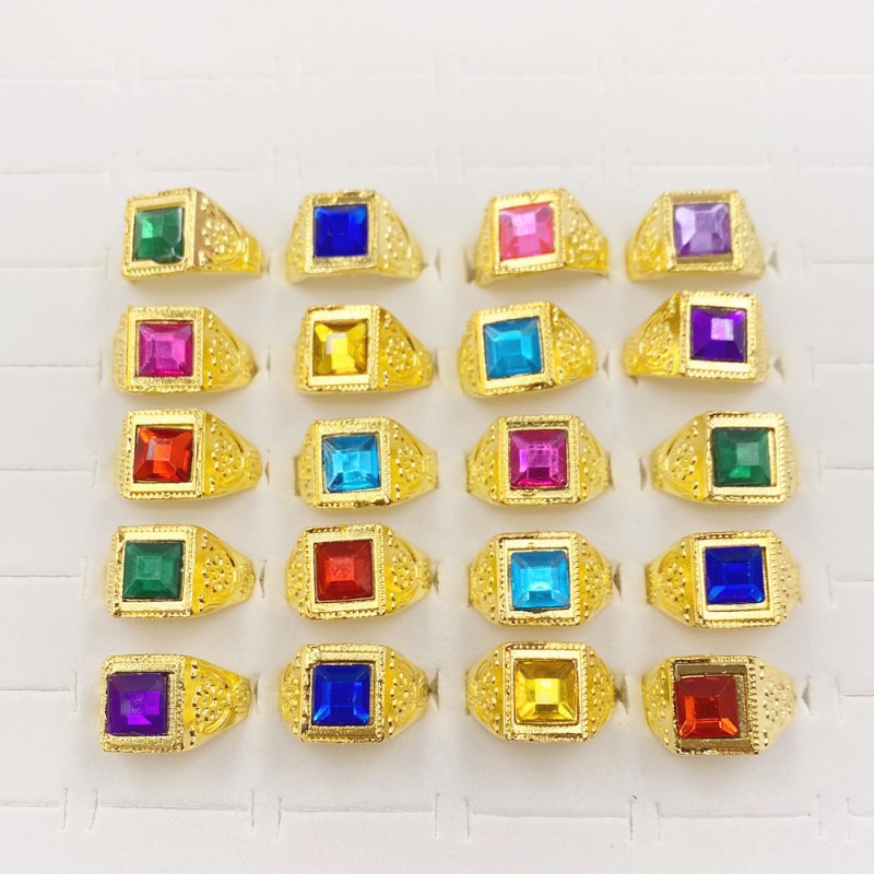Men's 24K Gold Plated Men's Square Ring Open Men's Square Diamond-encrusted Acrylic Colored Diamond Ring Ancient Method Gem