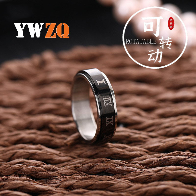 Creative Rotatable European and American Simple Style Roman Numerals Men's Ring Stainless Steel Aggressive Trendy Ring Ring