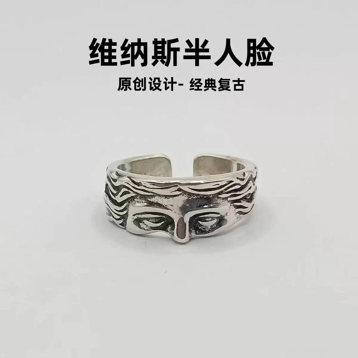 Venus Half-Face Ring for Men, Exaggerated Minimalist Style Expression Index Finger Ring, Fashionable European and American Cross-Border Open Ring