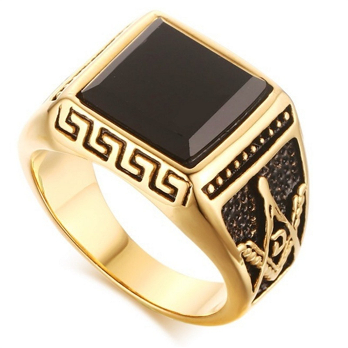 European and American Cross-Border New Classic Retro Ring Stainless Steel Color-Preserving Gold-Plated Black Glass Welfare Ag Men's Ring