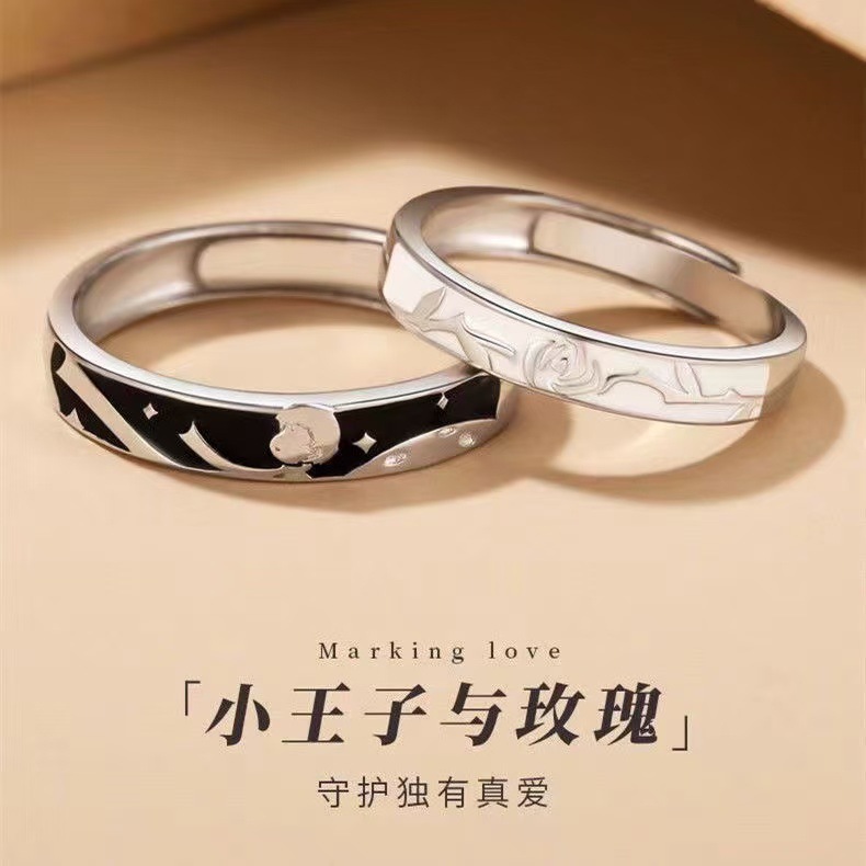 Silver Oath 999 Little Prince and Rose Couple Ring Ring Niche Design Joker Valentine's Day Gift for Men