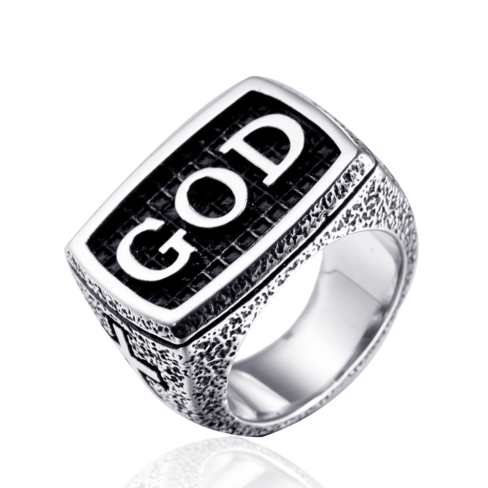 Retro style men's titanium steel ring nightclub index finger ring domineering GOD ring