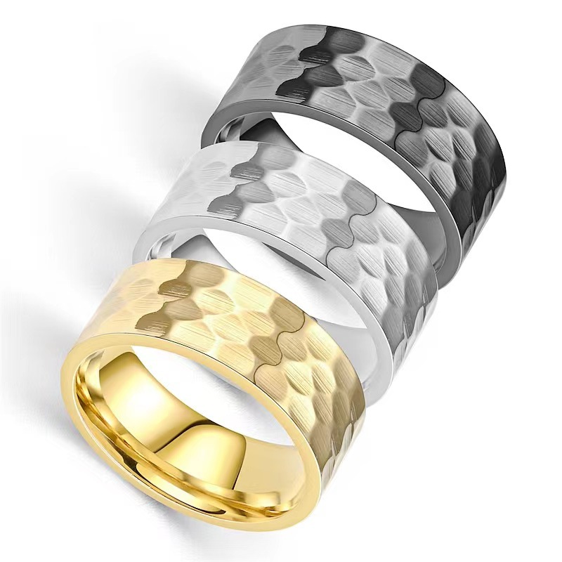Cross-border titanium steel men's ring tapping concave-convex pattern Fashion couple ring European and American jewelry fashion ring