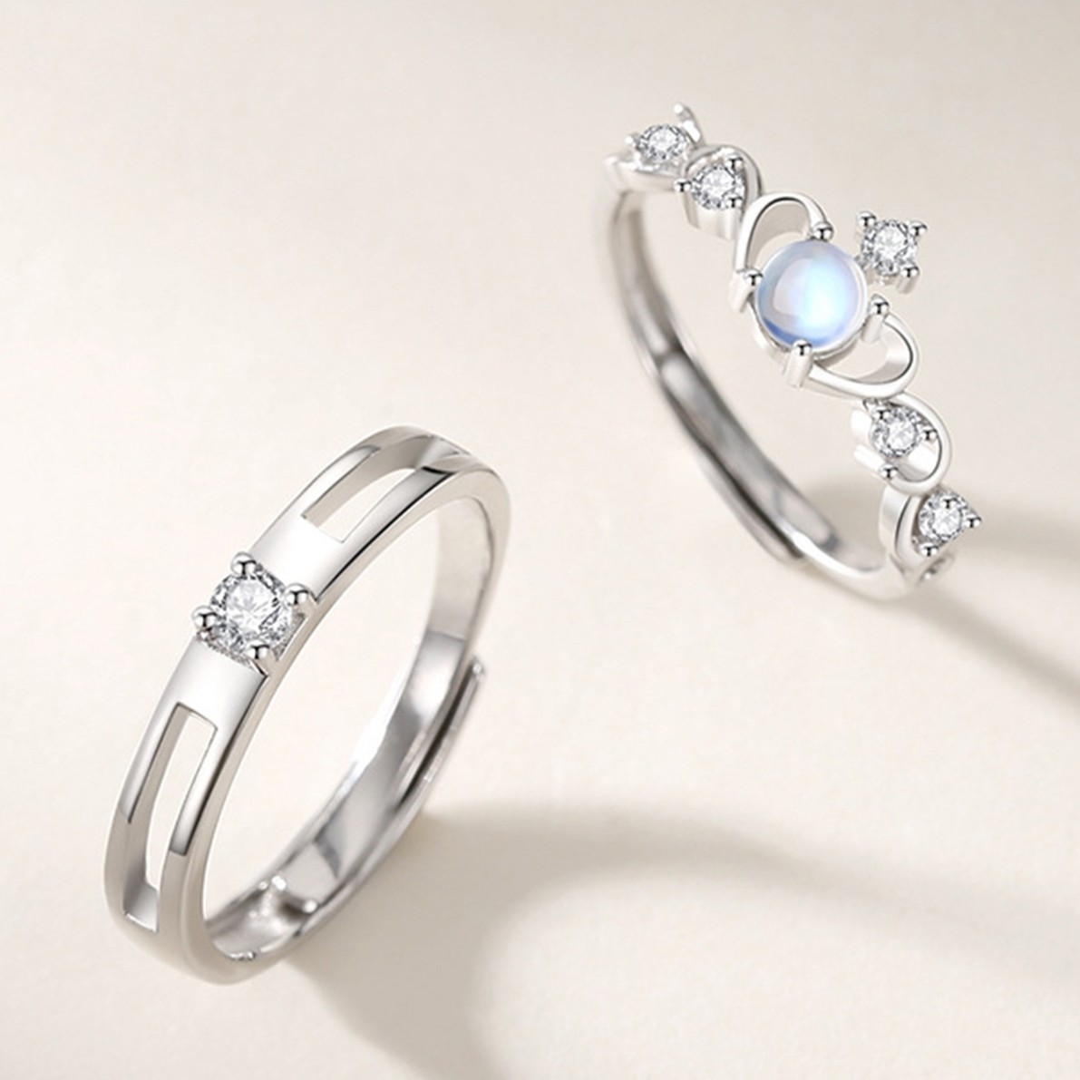 Pure White Copper Moonlight Lovers Ring Opening Adjustable Ring Day Gift for Boys and Girlfriends