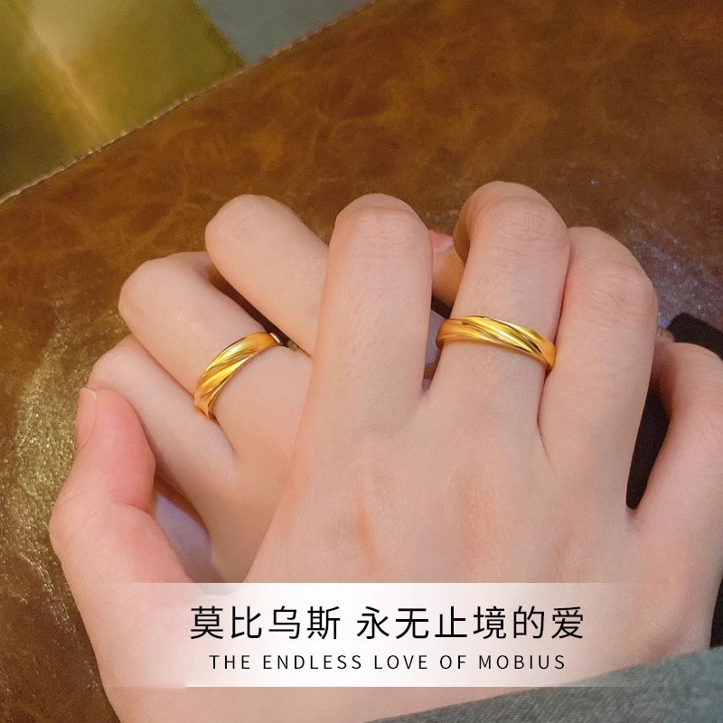Xiaohongshu Same Style Gold-Plated Mobius Couple Rings Ancient Style Ins Fashion Imitation Rings Wholesale for Women
