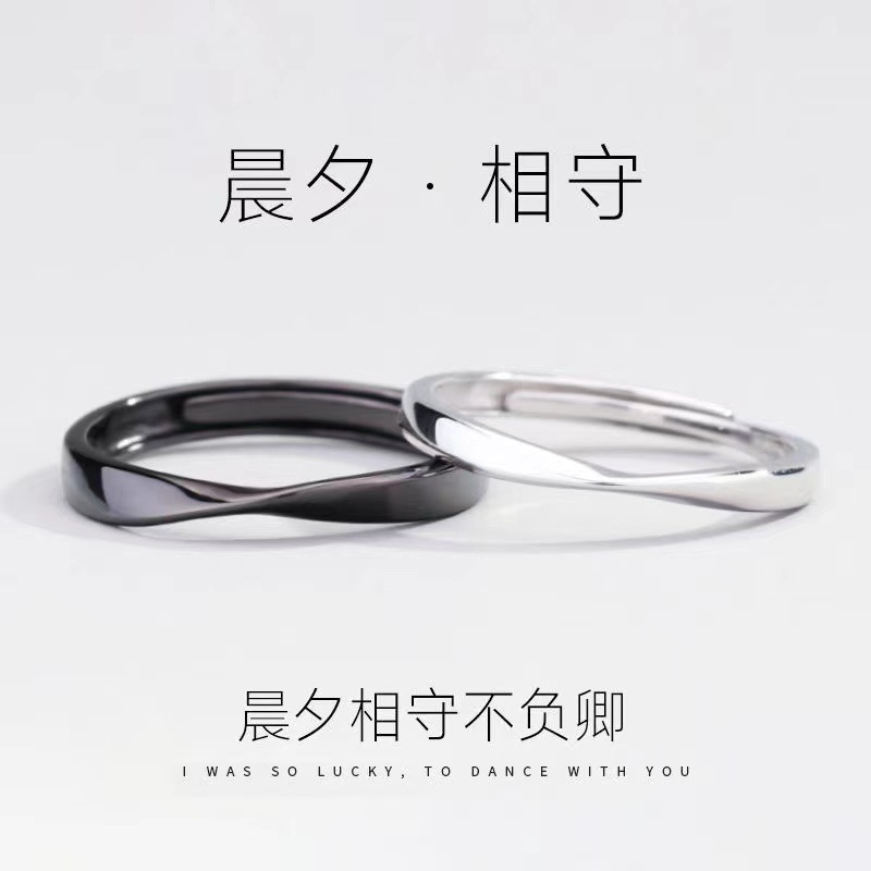 Mobius Strip Silver-Plated Couple Ring Earrings Bracelet Set Pair Japanese and Korean Style Simple Open Design for Male and Female Students