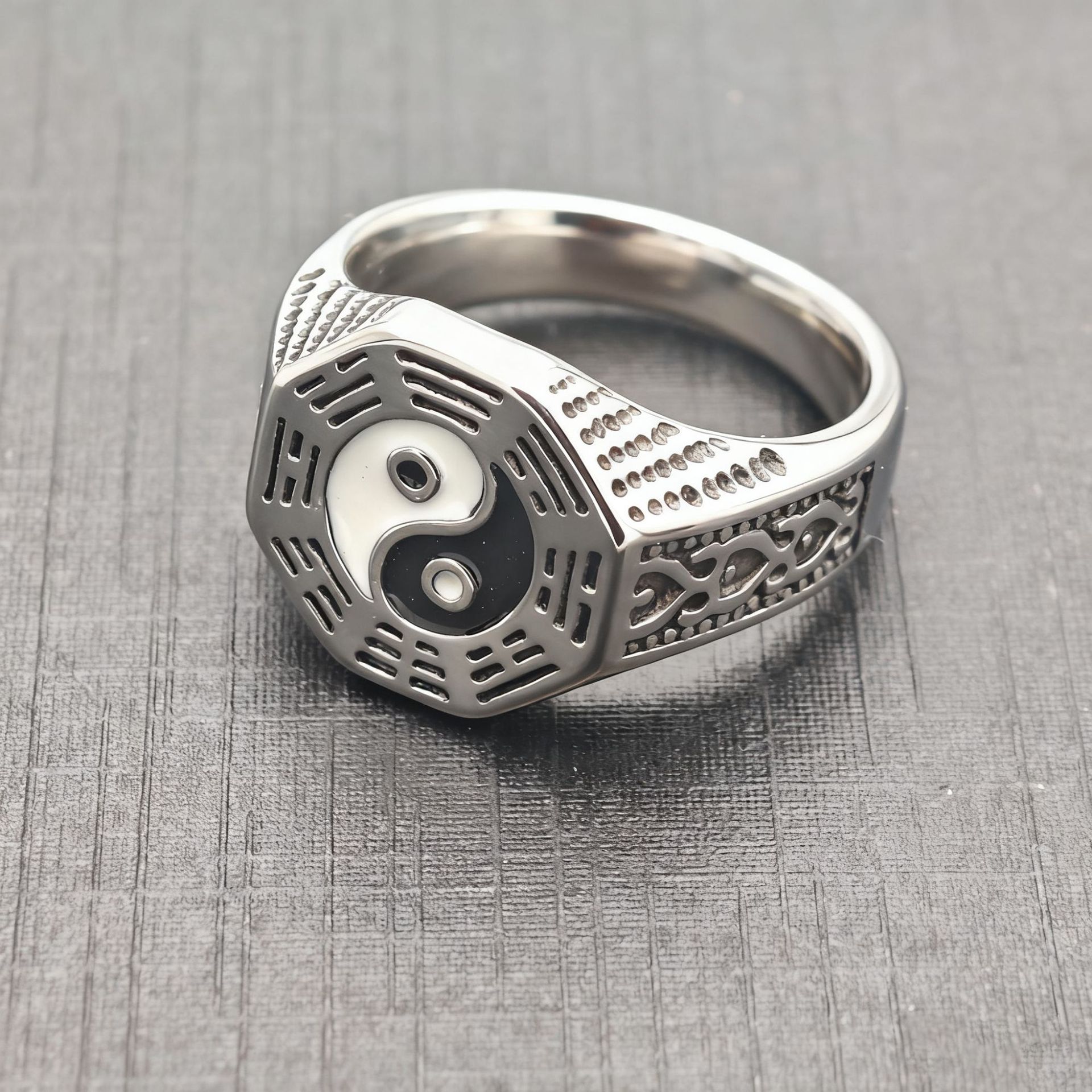 Chinese Style Jewelry Titanium Steel Yin and Yang Bagua Ring Retro Trendy Men's Titanium Steel Oil Dripping Bagua Ring Niche High-End