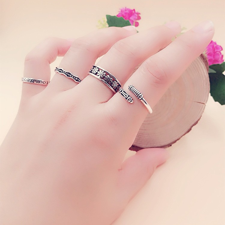 European and American cross-border Men's trendy metal ring retro style cool handsome design totem geometric couple ring 5 pieces