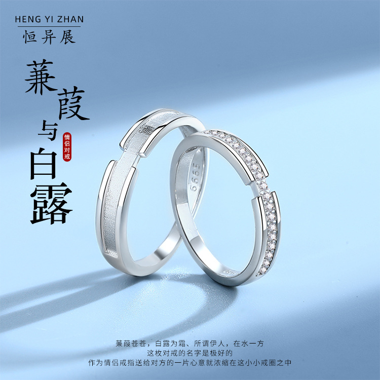 Jianjia and White Dew Couple's Ring for Men and Women S999 Sterling Silver Ring Niche Light Luxury Closed Wedding Ring Valentine's Day Gift